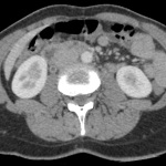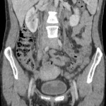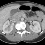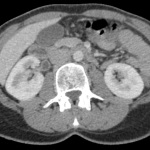 بالصور لا يظهر أي آفة كلوية وإنما تسمّك الوصل الحالبي الحويضي الأيمن مع امتداد التسمّك على طول الحالب الأيمن،